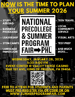 The National Precollege & Summer Program Fair: Philadelphia is a free event for high school students and their families looking to discover their summer 2026. This in-person event will showcase over 100 ways high school students can spend this summer, including on-campus pre-college programs at the nation's most prestigious universities, study abroad opportunities, STEM programs, entrepreneurship mentorships, teen travel, visual arts, test prep, local nonprofits seeking summer volunteers, and much more!